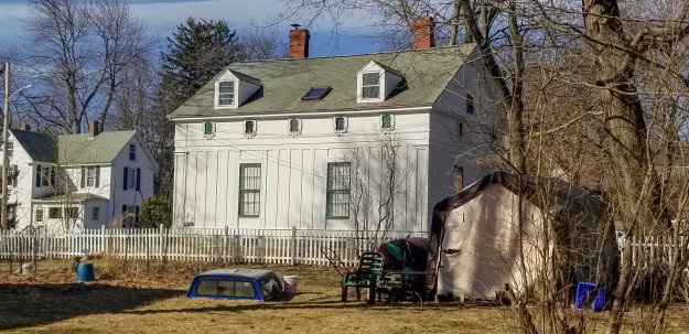The main block of the house measures 26′ on the street sides and is 34′ long. The ell facing Prospect Street is 16′ deep and stretches a full 53′ to the wall of the barn. It has 2 stories and an attic. The detailing of the Prospect Street facade and the ell is straightforward with claps and simple molded window and door trims. It is the main block that calls our attention.