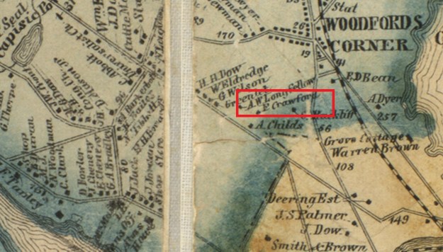 Nathan Mayhew may have been the first owner to live in the house at 102 Ashmont Street. The 1850 census shows him in Westbrook but where is an open question. He didn’t stay long for in 1854 a grocer from Portland named Franklin Crawford purchased it. The Crawfords may have lived here as there is an “F Crawford” shown on the Chace map of 1857 and, when Craford sold to Jonathan Fogg in 1859, his residence was listed as Westbrook. This is inconclusive as the map doesn’t show “F Crawford” where he should be relative to “C Rackliff” as the Rackliff property was next to our subject on the north.