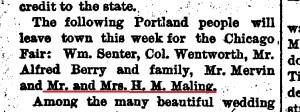 - Clipping from the June 6, 1893, Portland Daily Press. Library of Congress