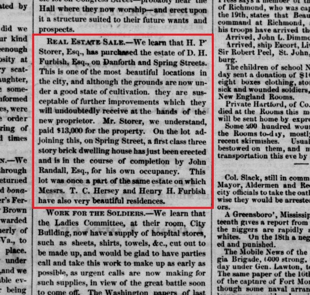 Clipping from the June 24, 1862, Portland Daily Press noting Horace Porter’s purchase of 15 Storer Street from DH Furbish. Newspapers.com