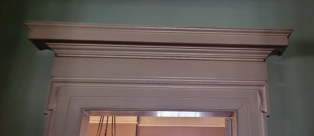 The door casings on the first floor. These were fascinating if somewhat plain. Made of mostly simple forms combined together or ‘built up’, they were, to my eye, more Greek Revival than Italianate.