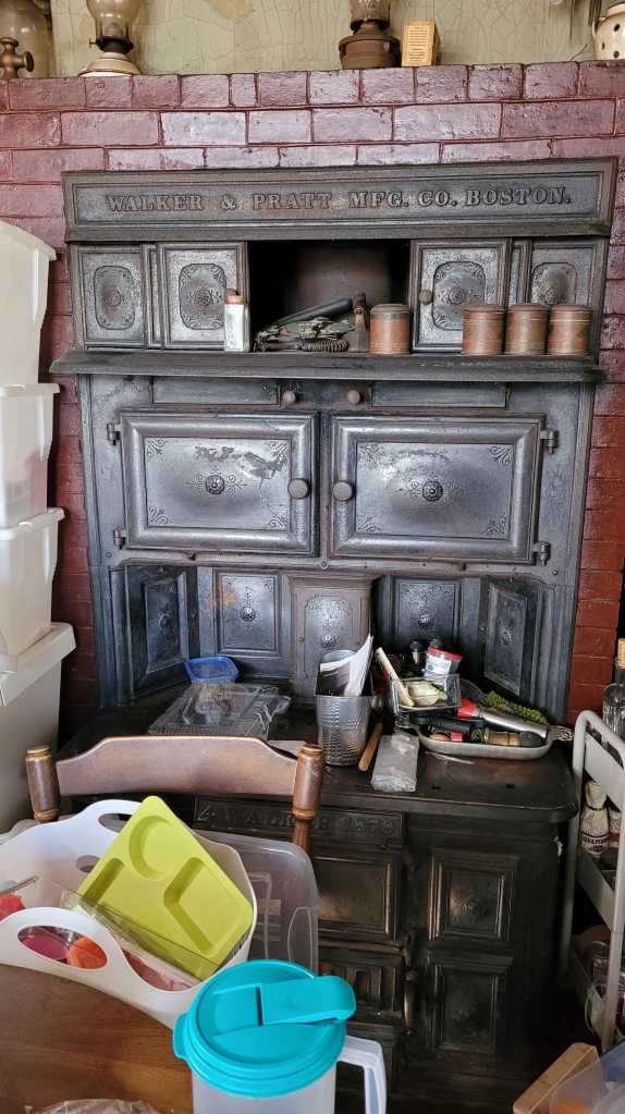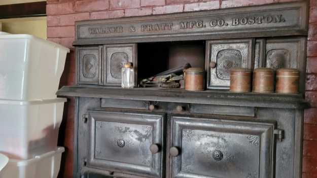 The kitchen was a difficult space to move around in due to the clutter. The cook stove was an impressive piece. This would have been installed after Andrew Spring died in 1876.