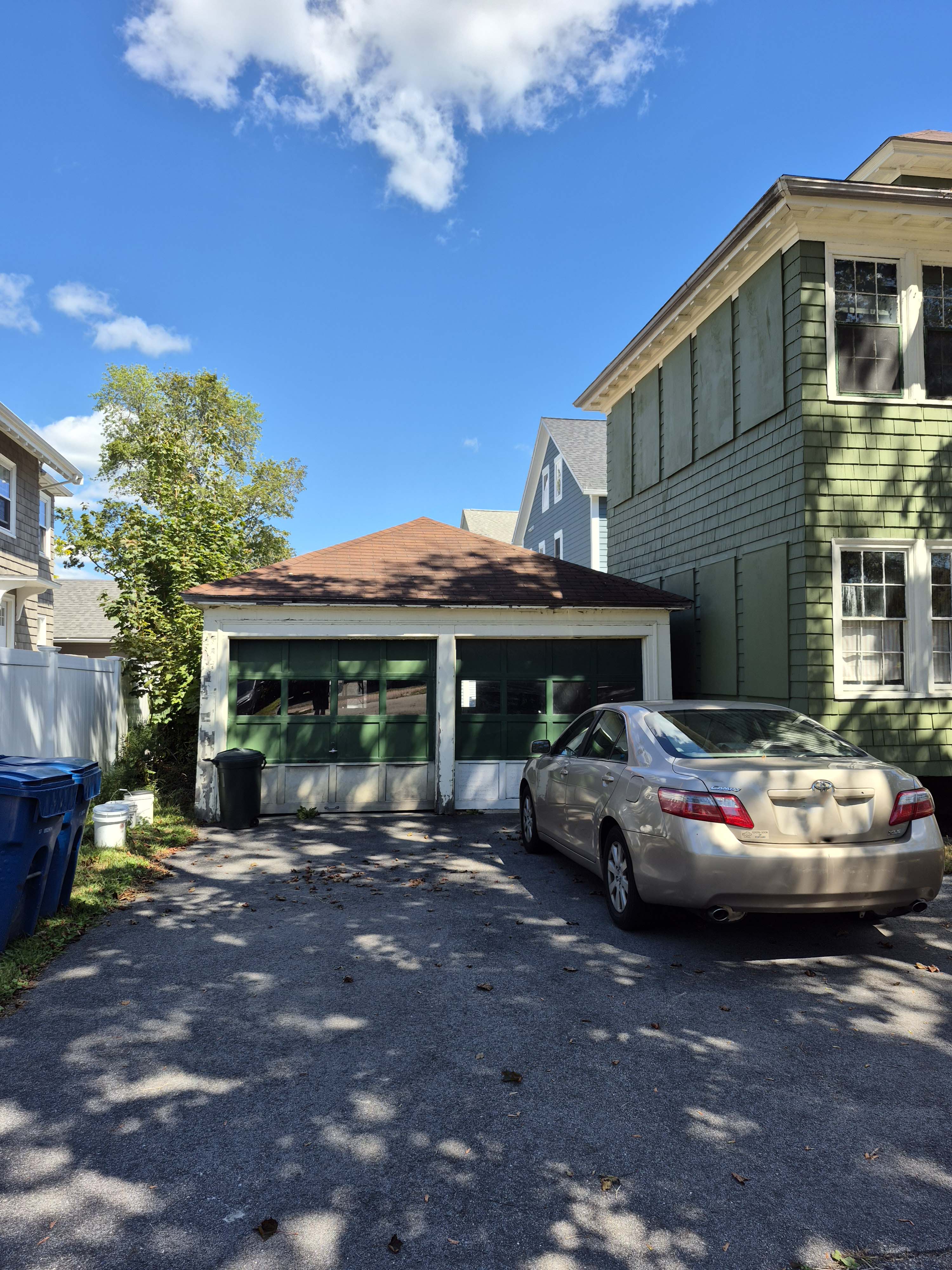 The garage was built in 1928. Placed in what was the back yard, it would have left little space, other than the 15 or so feet next to Oakdale Street, for the girls to play.