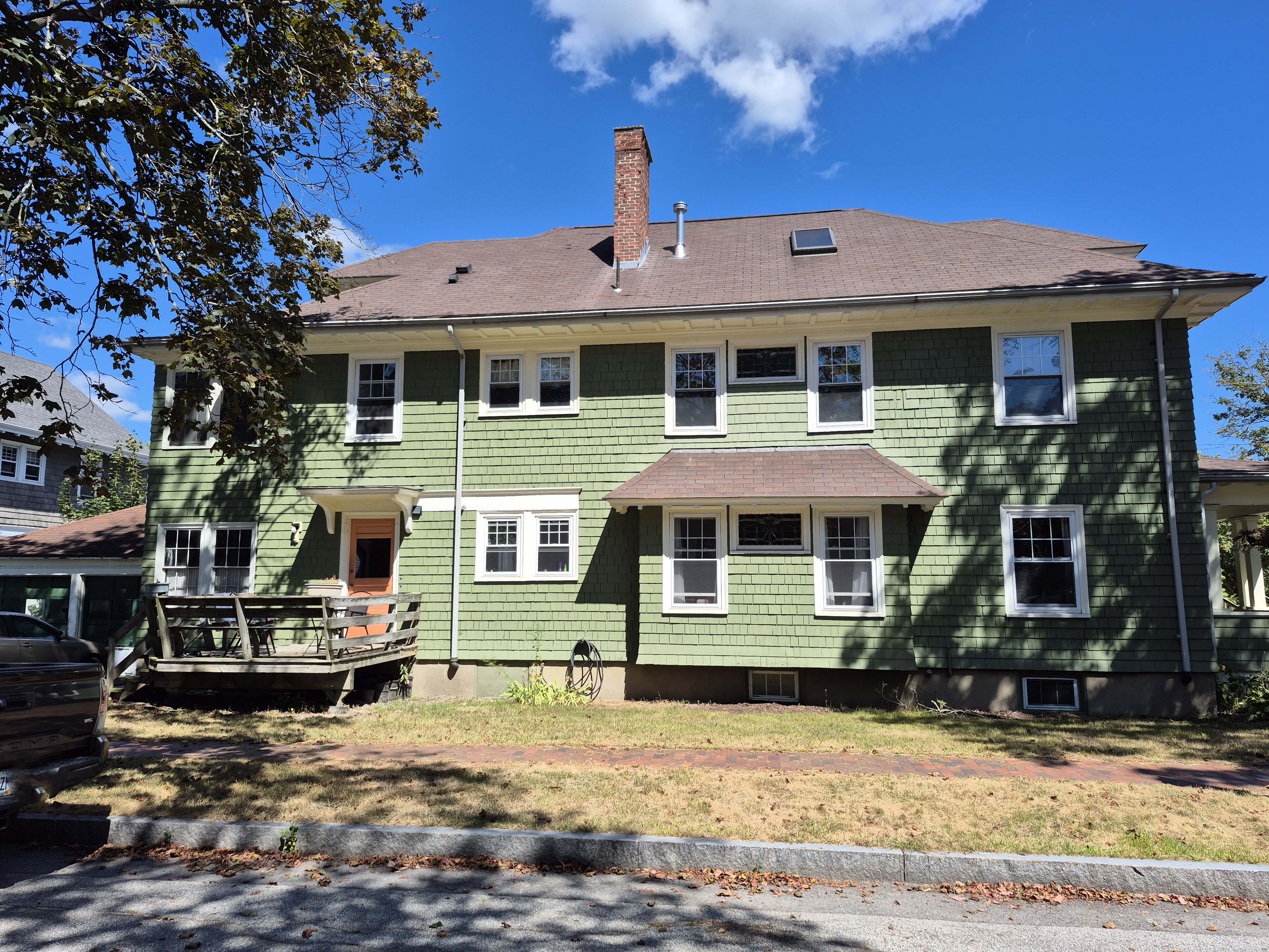 It seems pretty obvious that the Dartmouth Real Estate Company/F.A. Rumney purchased the plan used on our subject and repeated it over and over. Every house on the block developed by the company is the same plan with different styles/details applied to the surface. That short window belies the underlying plan.