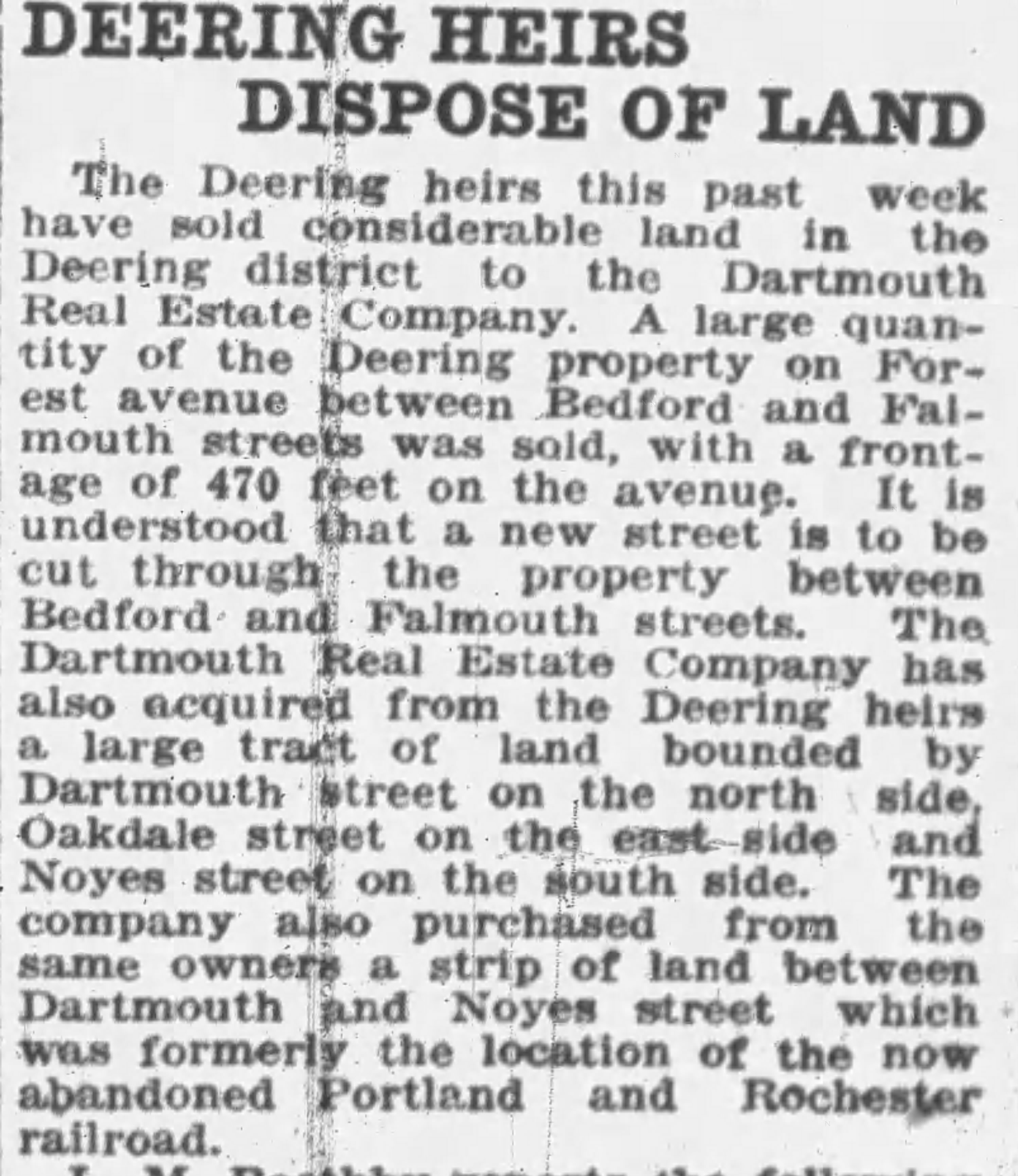 Dartmouth Real Estate seems to have been connected to the F.A. Rumery Company and Frank Rumery himself. The company’s earliest property transactions were purchases made from Frank Rumery in 1916. Rumery & Co were involved in buying and selling of property as well as building houses here in Oakdale. Lastly, the 1926 city directory list Earle H Rumery as the manager of the firm. Earle was the 3rd child, and eldest son, of Frank & Ida Rumery.