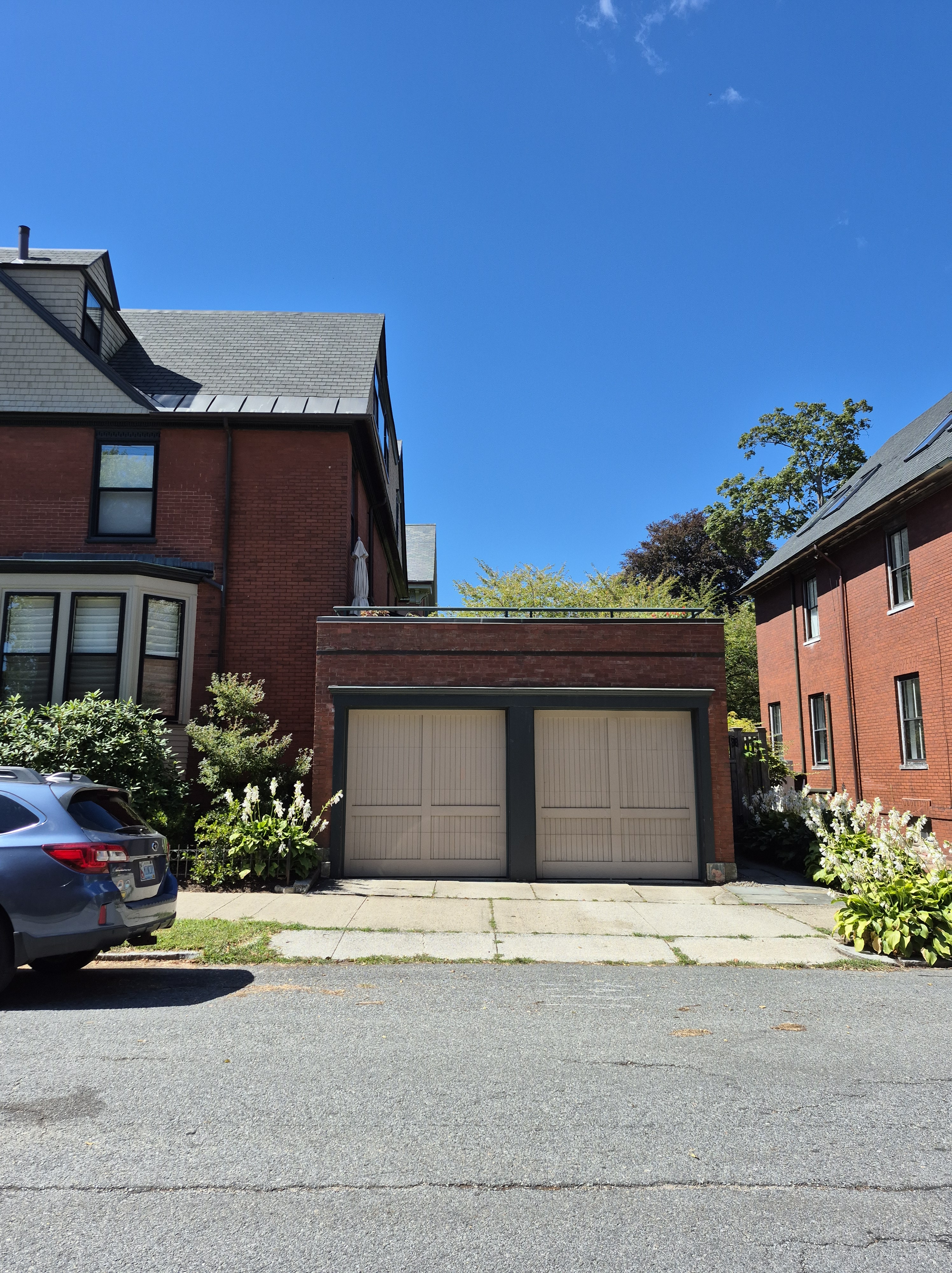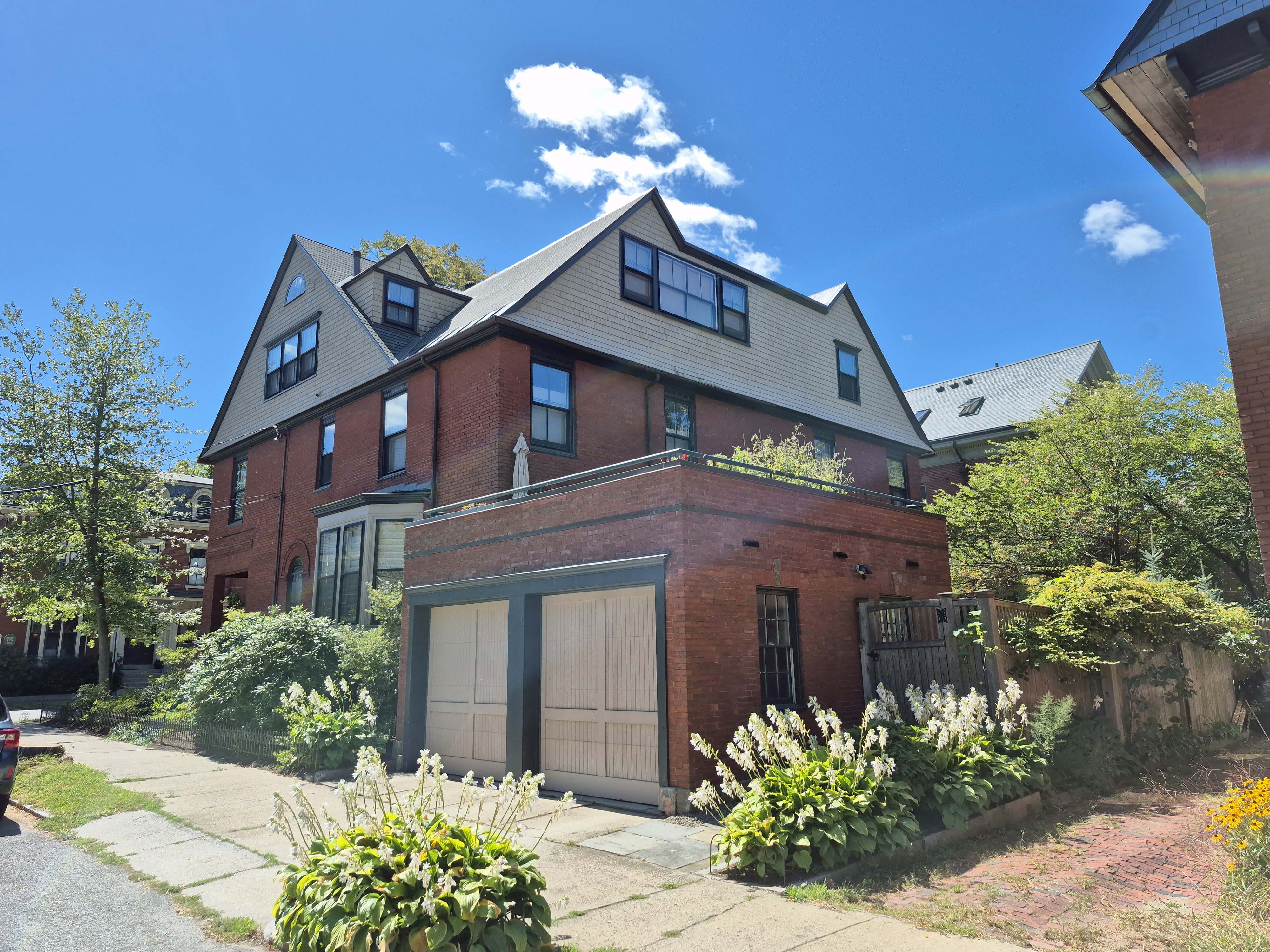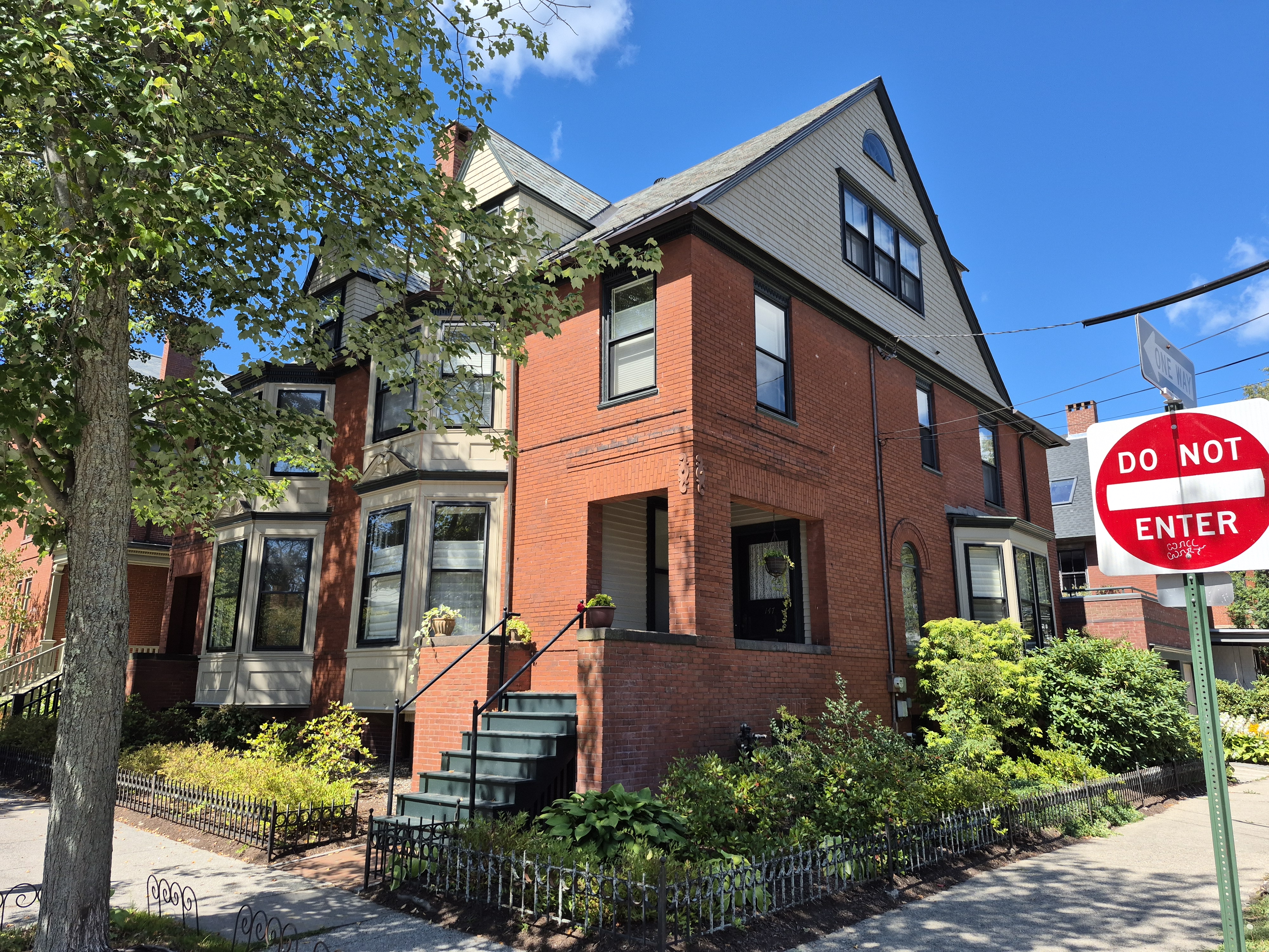 The easterly half of a Colonial Revival double/row house in the West End neighborhood.