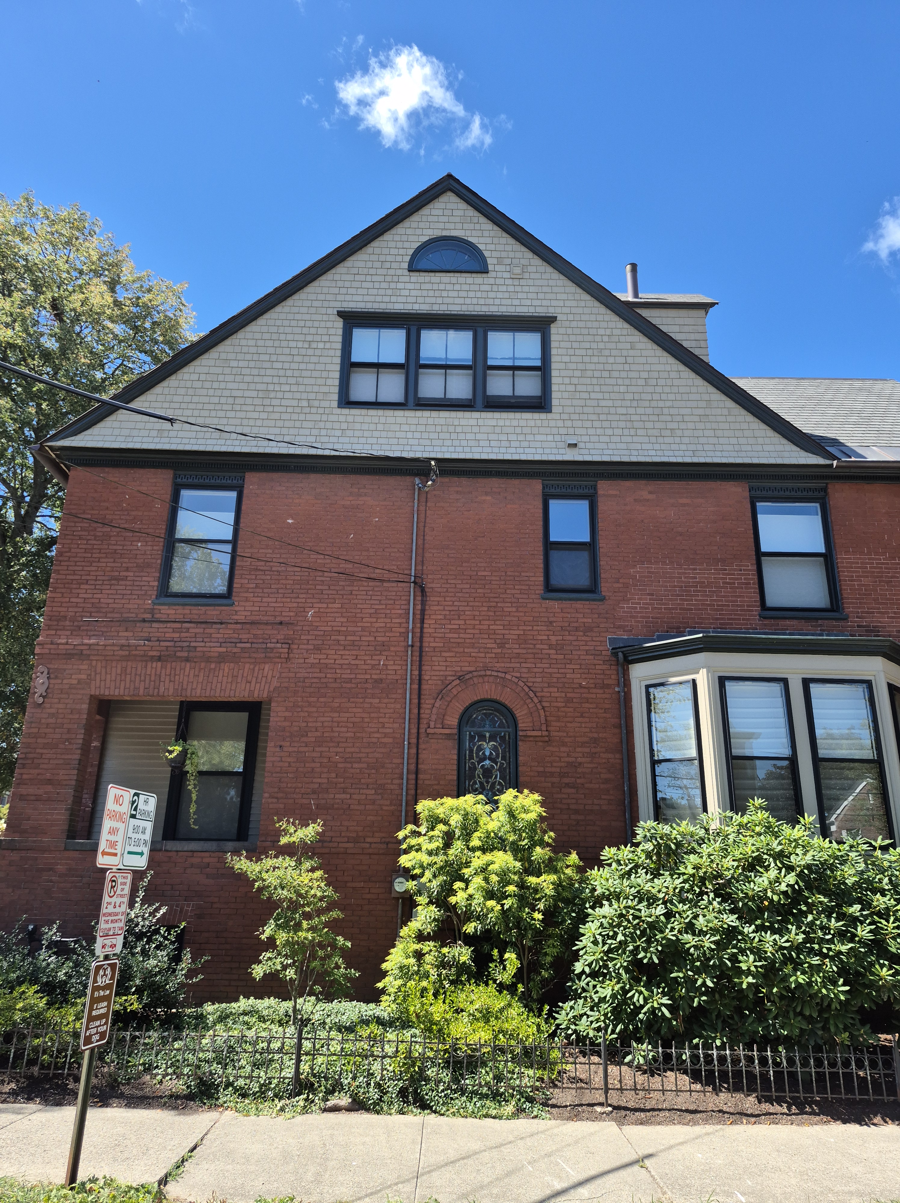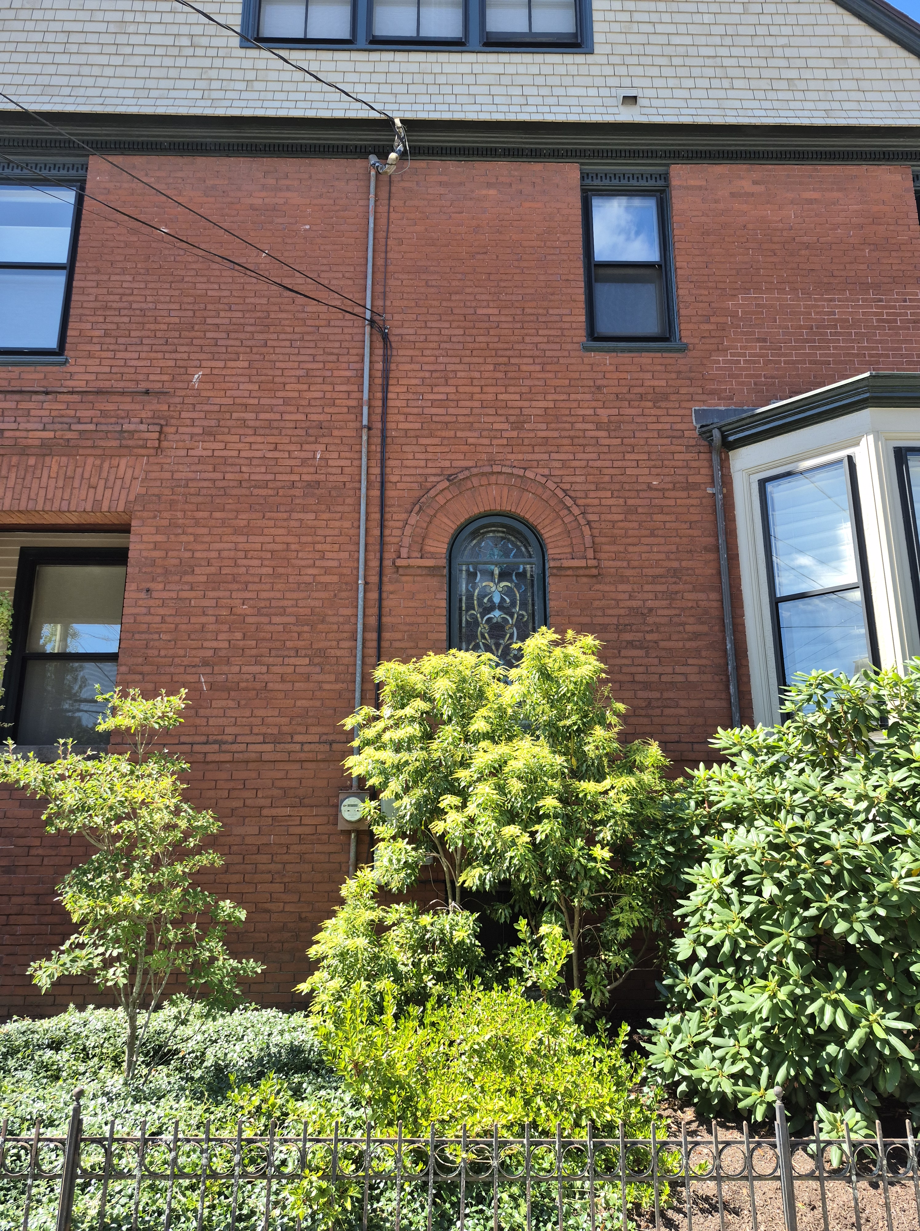 Set on the corner of Pine & Neal Streets, 147 Pine would have received substantial sunlight from the east facing Neal Street facade. This might seem to indicate a good location for a studio and there is a large bank of windows in the third floor gable but I am not so sure. Many sources claim northern light is preferred for the consistent color and lack of glare and hotspots. There is, on the third floor of the rear facing north, a bank of windows that may indicate the location of a studio. This bank of windows is oddly placed compared to the single unit in the gable of 149 Pine Street. Was this to give more light the space? Census records for 1900 & 1910 indicate the Harmons had live in servants so a space for them would probably been provided on the third floor as well. This may explain the odd little dormer with an oversized vent protruding from it. Most likely a bathroom.