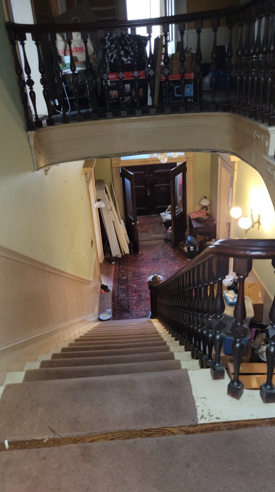 Looking down from the landing.