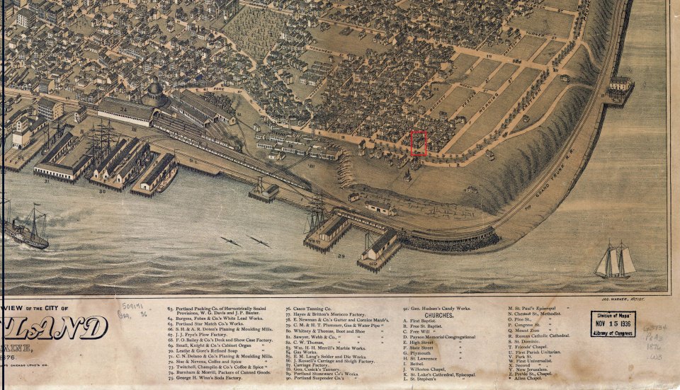 46 Eastern Promenade_1876 Portland BEV ← Previous Next → Portion of 1876 Birds Eye view. Library of Congress