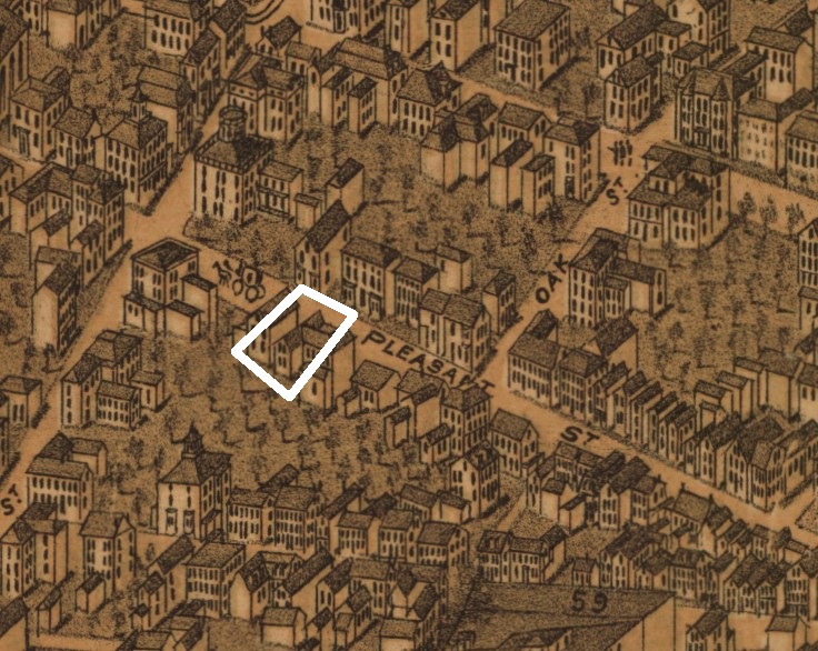 92 Pleasant St_BEV ← Previous Next → Clipping from the 1876 birds eye view of Portland. Library of Congress Clipping from the 1876 birds eye view of Portland. Library of Congress
