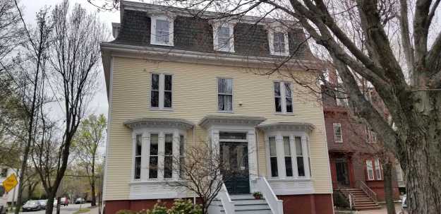 A wooden Mansard in the wedge of Pine and Emery Streets in the West End.