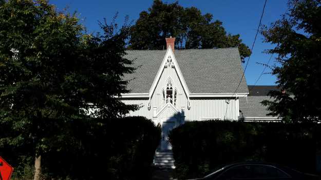 A remuddled Gothic Revival in the Pleasantdale neighborhood of South Portland.